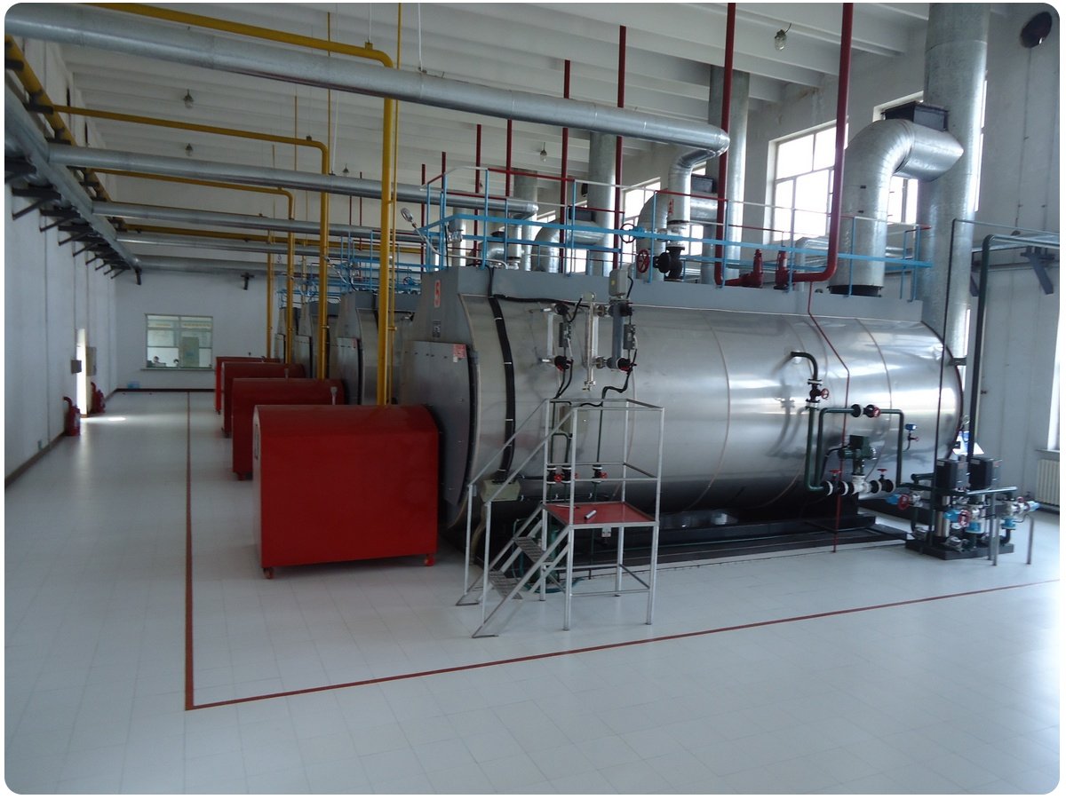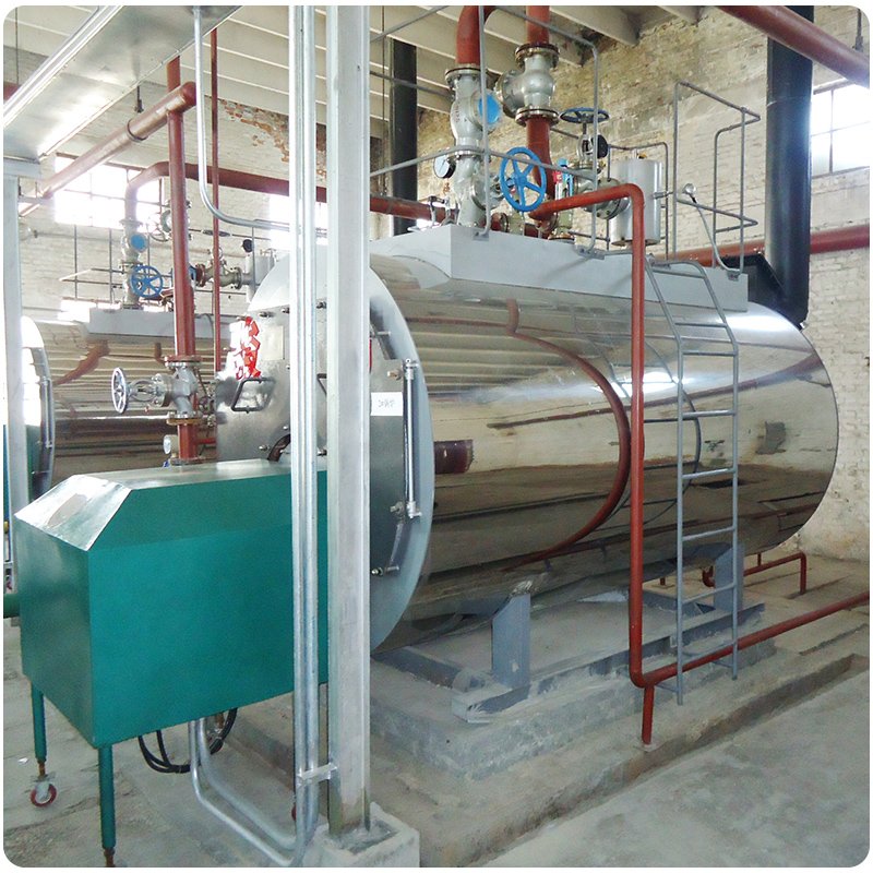 WNS gas boiler is a horizontal internal combustion all wet back structure. The furnace adopts full waveform furnace. Due to the high temperature flue gas in full corrugated furnace combustion, fuel combustion is sufficient. The screw smoke pipe is adopted for heat transfer, which can increase the convection heat transfer coefficient of boiler and improve heat transfer ability. The whole boiler is placed on the sliding steel base so that when the boiler is heated, it can expand freely in front and back. Boiler front door cover is designed with hinge structure for easy opening and maintenance.